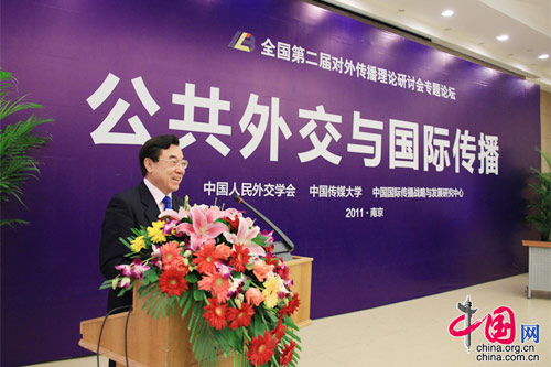 會上,全國政協外事委員會主任趙啟正應邀發表了主旨演講,中國人民外交學會副會長兼秘書長黃星原、中國傳媒大學副校長胡正榮、中國國際公共關系協會常務副會長鄭硯農等十余位官員、學者與會并發表了演講。