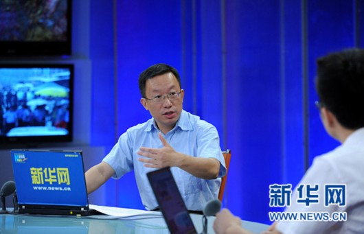 2011年9月8日,“互聯網法律知識普及月活動”系列訪談請中國社會科學院法學研究所研究員周漢華與網友談網絡隱私保護。圖為嘉賓與主持人交談。新華網 陳競超 攝