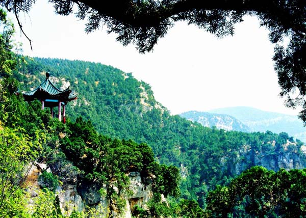 ◇幽:五峰山有洞。山上山下蒼松翠柏掩映著的安樂軒、蓮花洞、王母