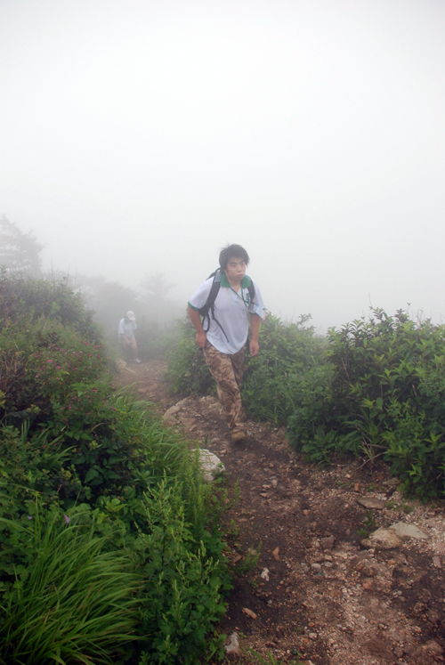 因為天氣陰沉,山里霧氣更重,能見度很低,“只覺得眼前的路越來越不好走,云霧遮住了望遠的視線,辨不清方向,有種深陷其中的感覺”。