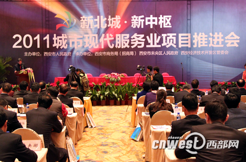 作為中國西安投資環境說明會平行分會的“新北城 新中樞2011城市現代服務業項目推進會”,由西安市政府主辦,西安市商務局、未央區政府、經開區管委會共同承辦。西安市副市長李秋實,西安市政協副主席、西安經開區黨工委書記郭學民以及未央區、經開區領導出席推進會。會議由未央區副區長任太龍主持,經開區管委會主任賈生林和未央區委副書記吳智民做投資環境推介。