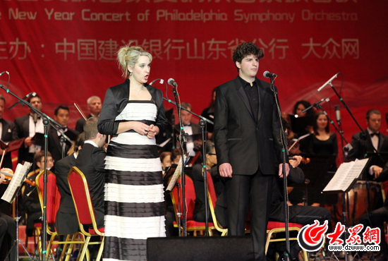 大眾網濟南12月23日訊(記者 馬鑫 盛堃 韋輝 姜洋)華麗悠揚的演奏間不乏氣勢恢宏,高亢柔美的演唱中還閃現著活潑與靈動。12月23日晚,由大眾網、建行山東省分行聯合主辦的“2012年建行之聲大眾網十周年新年音樂會”在濟南的山東會堂華麗上演。作為大眾網十周年系列活動之一的此次新年音樂會,也同時是費城國家交響樂團、費城歌劇院這兩大國際頂級藝術機構在華的首次聯袂演出,音樂會上藝術家們的精彩表演讓在場的2300余名觀眾聽得如癡如醉。可以說,本場音樂會為泉城市民獻上了最唯美的新年禮物。