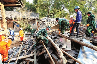 地震發生后,云南省及災區各級黨委、政府迅速啟動應急預案,6100多名解放軍、武警、消防部隊官兵和公安民警、民兵預備役人員以及當地干部群眾全力以赴搜救被困群眾。