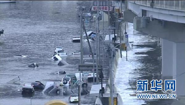 這張3月11日NHK電視臺電視節(jié)目截圖顯示的是日本北部沿海受地震影響地區(qū)受災(zāi)情況。