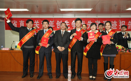 大眾網濟南4月1日訊(記者 曹亮 盛堃) 今天下午,省直機關青年創先爭優先進事跡報告會在濟南舉行。大眾網采訪中心、齊魯晚報·張剛社區工作室、山東省任城監獄一監區等11個集體被共青團山東省委、中共山東省委省直機關工委命名為2009年度山東省青年文明號。齊魯晚報青年記者喬顯佳等5名同志被授予“2011年度山東省直機關杰出青年崗位能手”稱號,并由中共山東省委省直機關工作委員會給予記三等功獎勵。