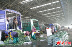 ▲壽光農(nóng)產(chǎn)品物流園:正月初三,位于壽光市城區(qū)北部的中國壽光農(nóng)產(chǎn)品物流園內(nèi),一片繁忙的景象:拖著本地蔬菜的農(nóng)用車,拉著外地蔬菜的大貨車,在寬敞的交易大廳里來回穿梭,卸貨、裝貨,然后再開往下一個“幸福的站點”。5日凌晨,記者來到這里,探訪節(jié)日里的“蔬菜王國”,為了確保全國的蔬菜供應,這里每天有1500萬噸蔬菜運往全國各地。一菜商說,按照慣例,春節(jié)期間物流園里大部分菜商只年初一休息一天,從年初二開始,從壽光發(fā)往全國各地的蔬菜就開始裝車上路了。來自吉林的張先生表示,為了能在吉林老家蓋新房子,他和他的老鄉(xiāng)們過了年初一就來物流園,開始了新一年的工作。(大眾網(wǎng)記者春節(jié)播報)