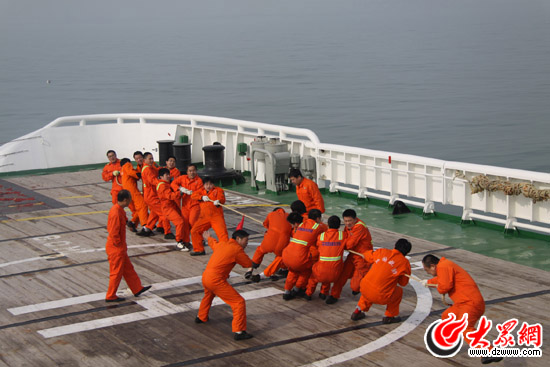 按照計(jì)劃今天沒有安排訓(xùn)練任務(wù),中午大家再一次聚餐。下午拔河比賽照常舉行,在后甲板上集合完畢,分出力量均衡的2支隊(duì)伍,船長(zhǎng)擔(dān)任裁判,在 “加油”的吶喊號(hào)子聲中,大家使出渾身解數(shù),奮勇爭(zhēng)先,煥發(fā)出了勃勃生機(jī),發(fā)揮出了團(tuán)隊(duì)密切合作、頑強(qiáng)拼搏的精神,體現(xiàn)的是集體的智慧和凝聚力,在一方摔倒的歡聲笑語(yǔ)中,有了對(duì)救助精神更深涵義的理解。晚上,本船舉行了新春有獎(jiǎng)知識(shí)問答,旨在寓教于樂,使每一位船員加深對(duì)日常應(yīng)知應(yīng)會(huì)常識(shí)的了解,答對(duì)了拿到獎(jiǎng)品,笑顏逐開,答錯(cuò)了,加罰一項(xiàng)娛樂節(jié)目之后,才能拿到獎(jiǎng)品,不亦樂乎。