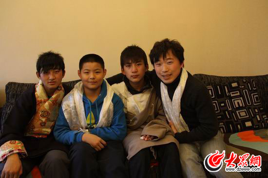 “沒見過,但是通過電話,在電話里聲音很和藹親切。”阿旺次仁,一個白凈帥氣的男孩子,看上去有些內向,說話怯生生的樣子。他的同學松塔則不一樣,性格很開朗,主動跟記者自我介紹起來,“阿旺次仁來自拉薩,我是那曲的,是牧區呢。他平時像個女孩子,害羞呢還,不過踢球踢得很好。”