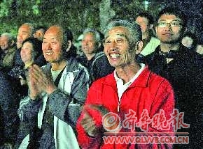 來自洪樓附近的市民張亞宏老兩口帶著孫子老早就來到現(xiàn)場占座位。“我第一天在報(bào)紙上看到預(yù)告之后,就跟孫子說好了要帶他來看皮影戲,今天早晨一看下雨,把孩子急壞了。”張亞宏8歲的孫子張永寧已經(jīng)跟爺爺商量好,就算是下雨也要來看演出。“我把雨衣都準(zhǔn)備好了,只要演出能正常進(jìn)行,我們就一定來看。”張亞宏說,傍晚雨一停,可把他和孫子高興壞了,他們早早就帶著馬扎來把座位占好了。