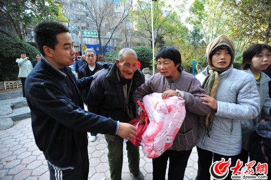 寒冬送暖在佛山苑社區(qū)發(fā)放愛心物資。