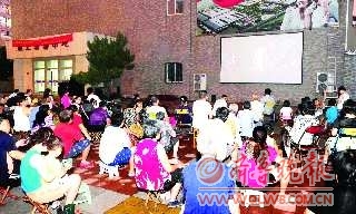 電影放映前,不少居民早早地就帶著馬扎占了靠前的地方,許多路過的市民也禁不住站在后邊駐足觀看。“哎,有放電影的。”市民王小姐和同伴剛從一家超市出來,看到正在放映電影,特意走過來看看,“這種電影小時(shí)候在老家的時(shí)候看過,不過好多年沒看了。”