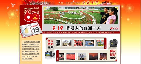 終于在大家的共同努力下,《中國一日》專題隆重登場了,它運用了音樂、動畫,圖片、視頻、文字的綜合表現手段,頁面設計構思新穎,生動活潑又具有較強的沖擊力,色彩柔和親切。它以日記的形式,突出了”中國一日”的主題思想。專題還借助論壇,博客,手機報等渠道,充分發揮了網絡優勢,激勵了廣大網友的參與熱情,記錄了9.19平凡一天的生活點滴,文字是平凡的,但情感是動人的。