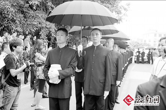 [提要] “舍身取義英雄氣,視死如歸民族魂。”昨日,騰沖國殤墓園內,安魂曲如訴如泣,人們手持白菊花默默站立路旁,躬迎19位中國遠征軍抗日將士的遺骸回國歸葬。