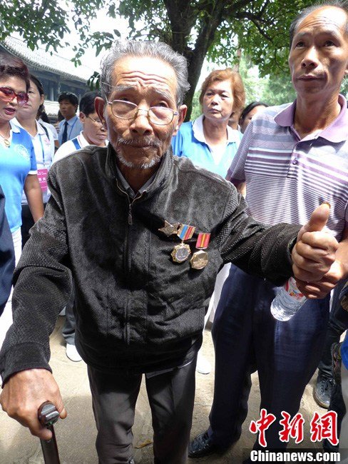 86歲的遠征軍老兵吳正光迎接戰友遺骸。