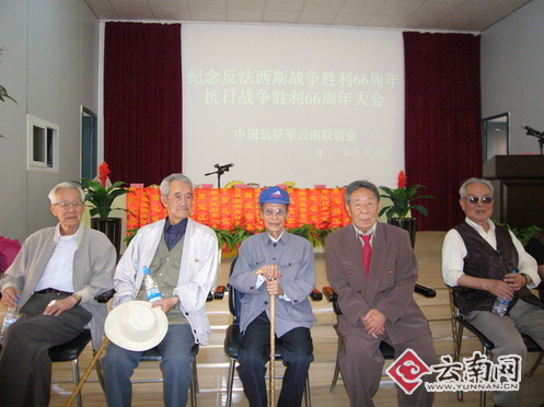 - 遠(yuǎn)征軍老兵齊聚云南 各界紀(jì)念抗戰(zhàn)勝利66周年