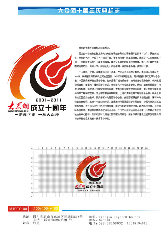 [提要] 圖案由一條抽象的騰龍和大眾網的標識組合形成以示十周年的數字“10”,飄逸的線條,熱烈的色彩,體現了“一網天下事,十年大眾情”的主題思想,展現了“山東新聞第一網,山東網友生活圈”十年來的輝煌