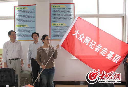 [提要] 今天上午10點,在蘆坊社區黨員活動室里,大眾網青年記者厲麥從山東大眾傳媒股份有限公司(大眾網)董事長、總經理林忠禮和陵縣縣委副書記朱秀彥的手里接過“大眾網記者走基層”的旗子,大眾網青年記者“走基層 問民生”活動正式啟動。