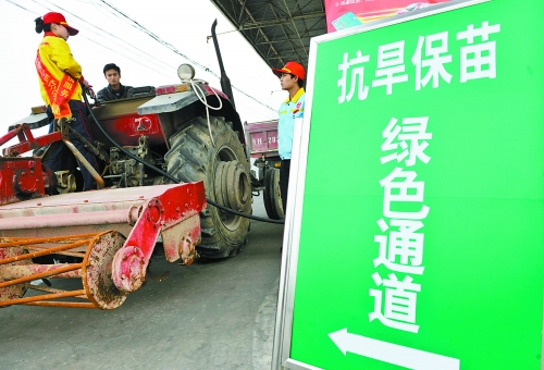 中國石油網(wǎng)消息 去年9月以來,山東各地連續(xù)發(fā)生嚴重旱情。特別是近兩個月來,由于缺少有效降水,旱情進一步加重,對全省農(nóng)業(yè)生產(chǎn)造成嚴重影響。中國石油山東銷售公司認真落實山東省政府召開的全省抗旱工作電視會議精神,研究做好抗旱保供工作的相關(guān)措施。這個公司專門設(shè)立抗旱保供聯(lián)系電話和聯(lián)系人,保持信息暢通;主管領(lǐng)導(dǎo)深入抗旱一線,密切關(guān)注當(dāng)?shù)睾登樽兓嬲莆崭黝愑糜托枨笮畔ⅲ桓骷佑驼驹O(shè)立抗旱保供綠色通道,24小時保障油品供應(yīng);充分利用流動加油車開展小額配送活動,主動送油到田間地頭。