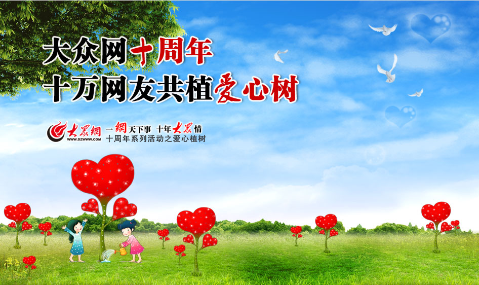 今天上午10時,大眾網主辦的“大眾網十周年十萬網友共植愛心樹”活動在濟南紅葉谷正式啟動。該活動在我省17個城市同時展開...[詳細]