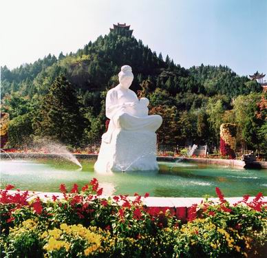 五龍蜂是中心景區(qū),五道逶迤的山嶺像伸向黃河邊的五條巨龍。在五龍峰拱衛(wèi)山麓平臺(tái)上,乳白色漢白玉“哺育”塑像,慈祥賢美的母親懷抱甜睡嬰兒,塑像栩栩如生,象征著黃河哺育著中華民族的骨肉親情。