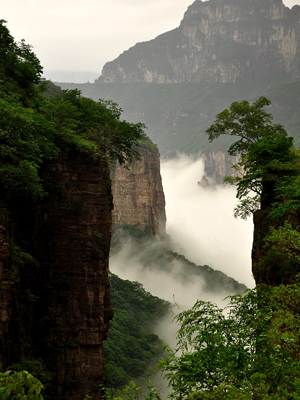 從河南新鄉輝縣市縣城向西北的南太行深處進發,沿途都是迷人的風景——回龍、關山,還有著名的八里溝。不過,正如《大河報》首席記者于茂世所言,“最險、最美的風景,則在路的盡頭,在最后出現的九蓮山上”,這正應了古人那句名詩,“無限風光在險峰”。