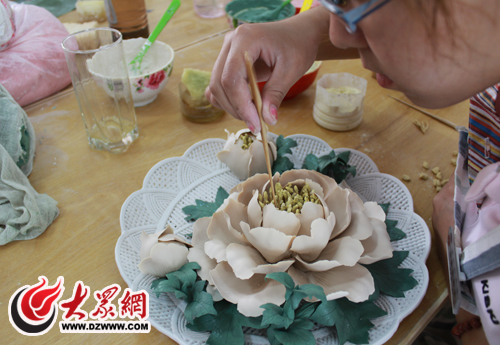 還未進行最后燒制的牡丹瓷看起來已經十分的生動逼真