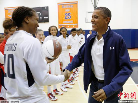 當地時間2012年7月16日,美國華盛頓,美國總統奧巴馬觀看了美國女籃和巴西隊的表演賽,賽后奧巴馬接見美國女籃隊員。