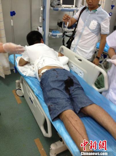 [提要] 王先生在醫院對傷口清創。目前,重慶大渡口新山村派出所正在調查此案,保安胡某和客戶歐某正在接受大渡口區公安分局新山村派出所調查。警方介紹,根據監控錄像顯示,事發時負責運鈔的保安胡某正在給銀行ATM機加鈔。