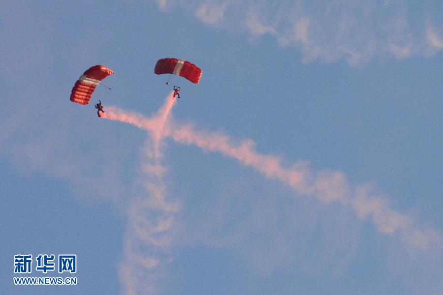 [提要] 8月9日,新加坡紅獅跳傘隊隊員在新加坡濱海灣浮動舞臺舉行的國慶慶典中表演高空跳傘。新華社發(鄧智煒攝)   8月9日,新加坡紅獅跳傘隊隊員在新加坡濱海灣浮動舞臺舉行的國慶慶典中表演高空跳傘。