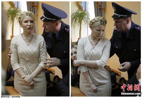 2011年10月11日,烏克蘭前總理季莫申科在聽取法庭判決時(shí)講話,一名法警要求她保持安靜。