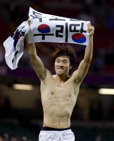韓國隊的中場球員樸鐘佑在場上打出“獨島是我們的領土”的政治標語。