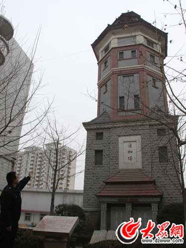 “當時的火車車頭都是蒸汽機車,需要大量的水。因此,必須有水塔為其供水!睗蠙C務段宣傳科負責人說,在抗戰時期,濟南機務段先后兩次被日本占領,也被國民黨統治過,并且多次遭到轟炸,但水塔都幸存了下來,在文革時期,甚至曾有火車頭撞上這座塔,水塔卻卻仍然結實而豪放地“活”了下來,而且至今屹立不倒。