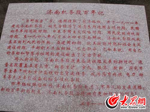 水塔南側大門外面的濟南機務段百年記