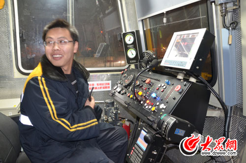 記者攀上運(yùn)行中的機(jī)車。(大眾網(wǎng)記者 馬鑫攝)