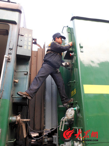 “火車能晚點,我們絕對不能,人等車可以,車等人可不行!”檢修乙班的班長王偉告訴記者,不管火車幾點到,他們都是每天早晨8點準時到單位與上一個班次的同事交接,然后對每天的14列圖定列車、1列臨時客車進行檢修。“人的時間跟著車定,如果最后一班列車晚點一個小時,我們就得延長一個小時。”王偉介紹說,一般情況下,檢修工要從每天早上8點工作到凌晨兩三點,然后到第二天8點交接工作,下班回家。在這16人中有5位外地人,一位來自淄博,兩位來自曲阜,兩位來自兗州,對他們5個來說,每天早晨8點下班后就要坐火車回家,上班的時候再坐火車來濟南,周而復始,“很多時候回家的車上沒有做,就得站一路!