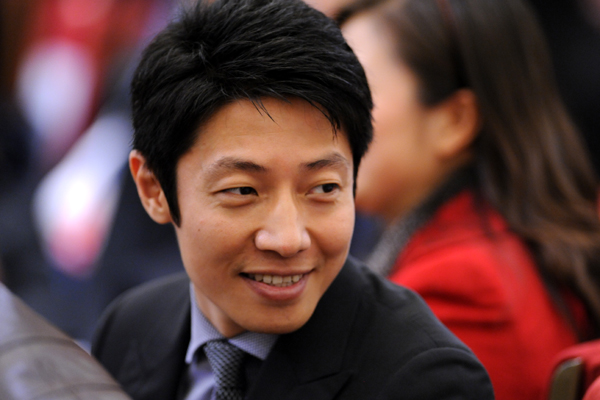 2012年3月14日11時(shí),溫家寶總理在人民大會(huì)堂三樓金色大廳與中外記者見(jiàn)面并答問(wèn)。圖為中央電視臺(tái)記者撒貝寧在現(xiàn)場(chǎng)。陳競(jìng)超 攝