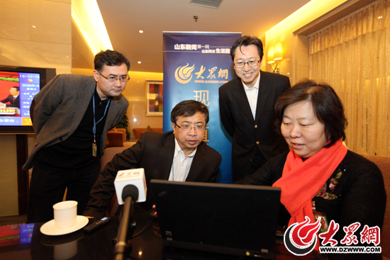 大眾網(wǎng)總編輯助理、采訪中心主任李冉向李建軍等領(lǐng)導(dǎo)介紹說,大眾網(wǎng)本次全國“兩會(huì)”報(bào)道共派出9名上會(huì)記者、編輯,大家克服各種困難,白天采訪,晚上寫稿,截至目前采訪人大代表、政協(xié)委員50多位,已完成原創(chuàng)稿件近200篇,尤其是“請(qǐng)問省長”和“請(qǐng)問書記、市長”欄目,已經(jīng)連續(xù)堅(jiān)持了三年,在業(yè)界和網(wǎng)友中引起強(qiáng)烈反響。