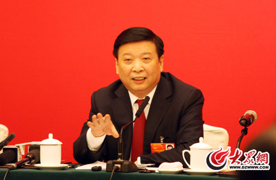 全國人大代表、山東省委副書記、省長姜大明現(xiàn)場回答記者的提問。
