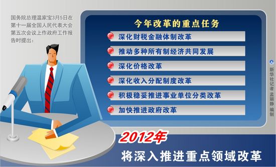 國務(wù)院總理溫家寶3月5日在十一屆全國人大五次會議上作政府工作報告時提出,要深入推進重點領(lǐng)域改革。以更大決心和勇氣繼續(xù)全面推進經(jīng)濟體制、政治體制等各項改革,破解發(fā)展難題。 [詳細]