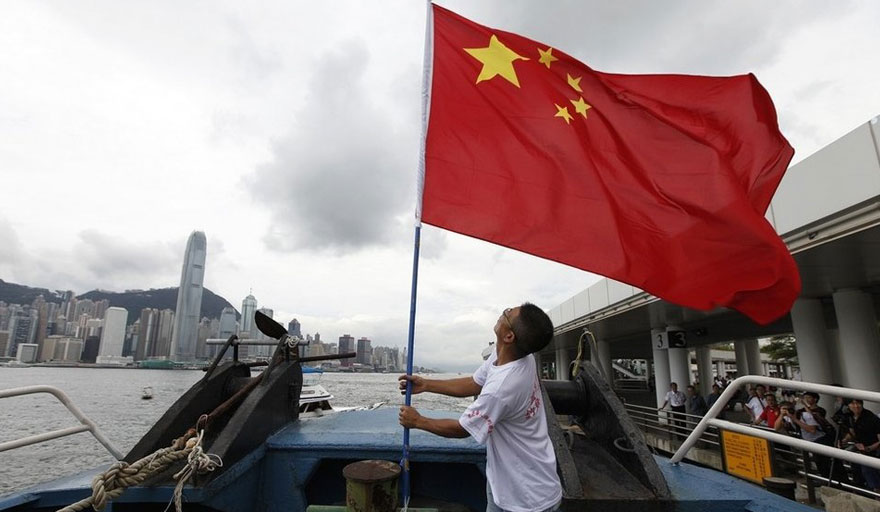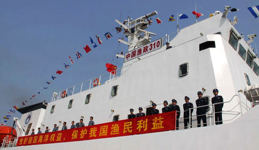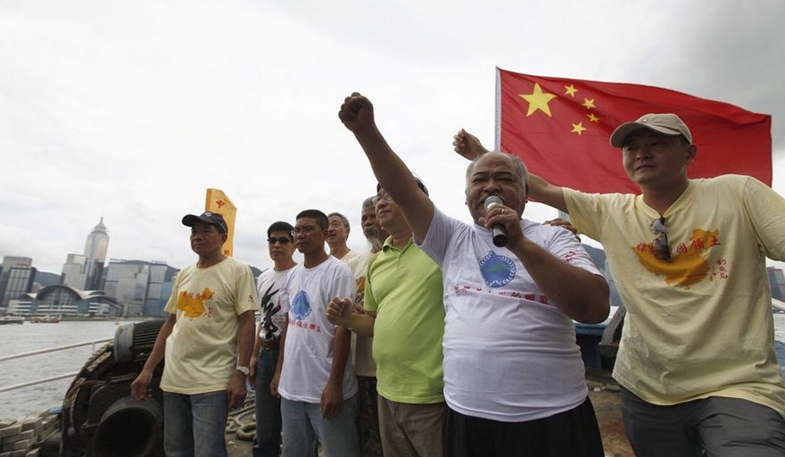 圖為日本海上保安廳艦船包夾香港“啟豐二號”保釣船。