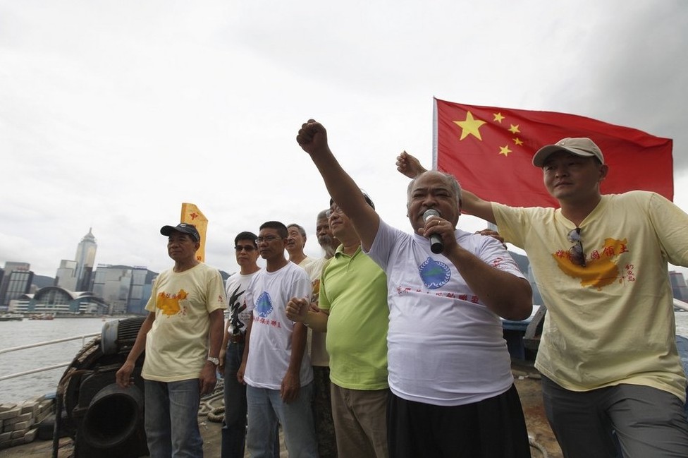 保釣人士出海前高呼口號。7月4日,臺灣保釣人士黃錫麟等人搭乘“全家福號”漁船進入釣魚島海域,臺灣派出5艘巡防艦艇全程維護“全家福號”安全。期間,保釣方船只與日方艦艇出現(xiàn)短暫對峙。但最終成功在距釣魚島10公尺處亮出五星紅旗宣示主權(quán),并在臺“海巡署”艦艇護航下順利返臺。
