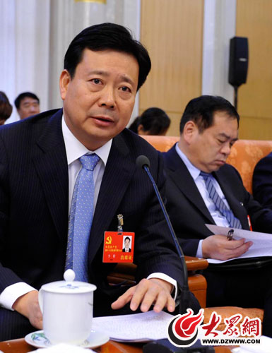 在山東代表團開放日活動發言時,黨的十八大代表、省委常委、青島市委書記李群暢談海洋經濟和美麗青島。