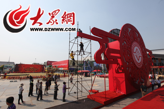 博覽會開幕式將于明天上午8:50在臺兒莊古城廣場舉行。大眾網前方記者在開幕式準備現場了解到,開幕式共分為熱場演出、領導出場、現場表演、開幕式啟動和非遺表演展示等五大階段,包含了舞獅、武術、苗族蘆笙舞、魯南鼓吹樂、朝鮮長鼓舞、九獅圖、侗族大歌等數十項非遺表演。