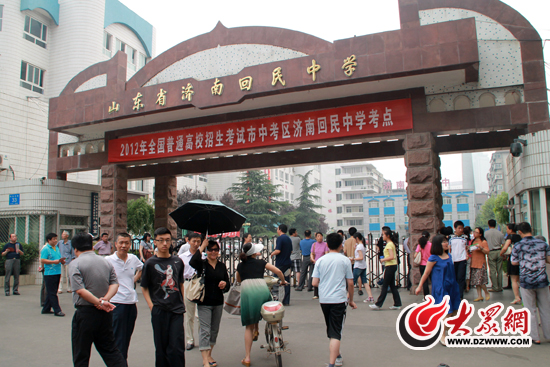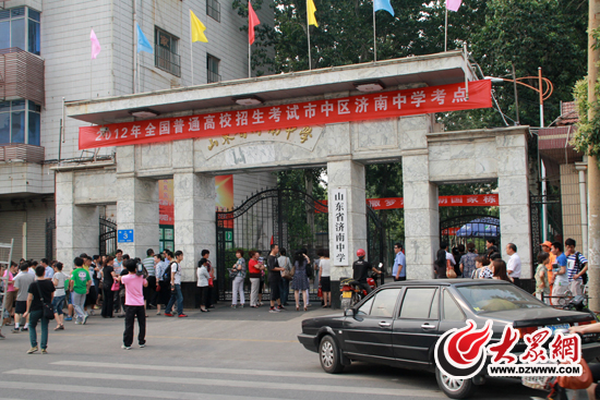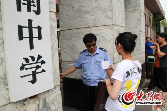 下午3時許,濟南中學門外的樹蔭下、鐵門前早已人頭攢動。大門兩側也支起了一張張免費向考生贈送考試用品的桌子,不少培訓機構正忙著向來回踱步的家長發放傳單。為了保證考場不出現任何意外情況,學校只允許出示準考證的考生進入,家長和記者則被學校保安“拒之門外”。