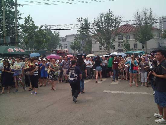 - 6月9日10:50山師附中考點 記者王磊:鮮花送英雄