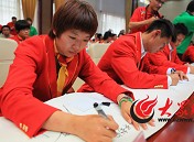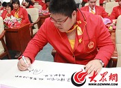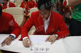 李曉霞在留言冊上寫下自己的奧運(yùn)感言
