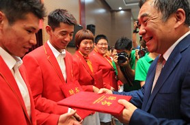 蔣強(qiáng)為奧運(yùn)獎(jiǎng)牌獲得者頒發(fā)聘書
