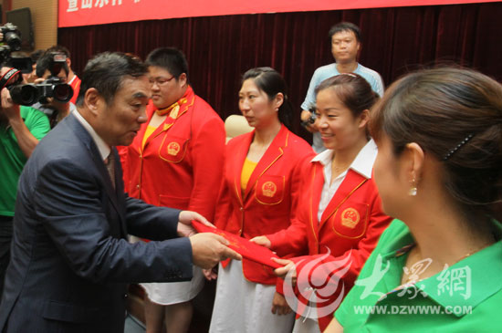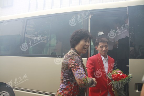 山東省體育局副局長(zhǎng)丁艷菊歡迎載譽(yù)而歸的奧運(yùn)健兒。