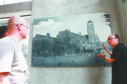 昨日,在濟(jì)南老商埠區(qū)的一處文化會(huì)館中,泉城首幅以描繪老濟(jì)南火車站場(chǎng)景為主題的油畫在此亮相,引來(lái)多位參觀者駐足觀看。據(jù)了解,這幅畫長(zhǎng) 2.5米、寬1.5米,由濟(jì)南歷史民俗學(xué)者高人德民所繪制。 (范良 攝)