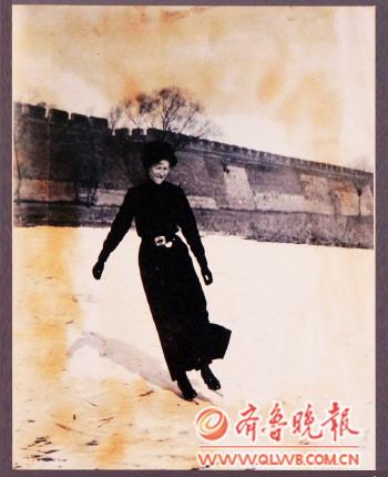 ◤百年前西維亞的祖母在大明湖溜冰時的留影。